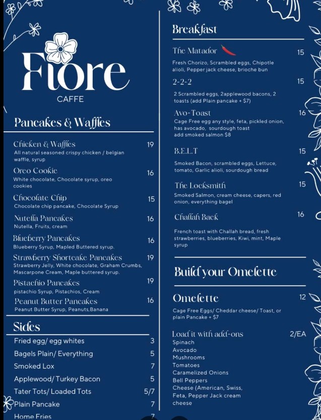 Welcome to Fiore Caffe, your ultimate destination for a fresh and flavorful breakfast in Miami. Located just steps away from the iconic Bayfront Park, Fiore Caffe is the perfect spot to start your day. Our menu is carefully crafted to offer the finest breakfast dishes, from classic pancakes and eggs to delicious coffee blends. Whether you're looking for a quick bite or a relaxed morning meal, we have something to satisfy every craving. Explore our menu and come visit us today for a memorable breakfast experience!